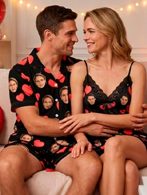 Snuggle into love. Custom pajamas for your sweetest dreams together.