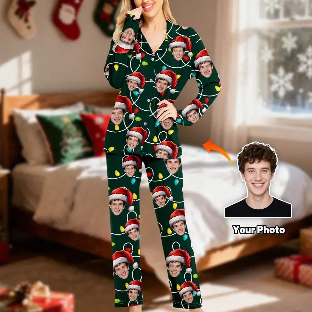 Custom Face Long Sleeve Pajamas Custom Christmas Gift Custom Face Photo Pajamas