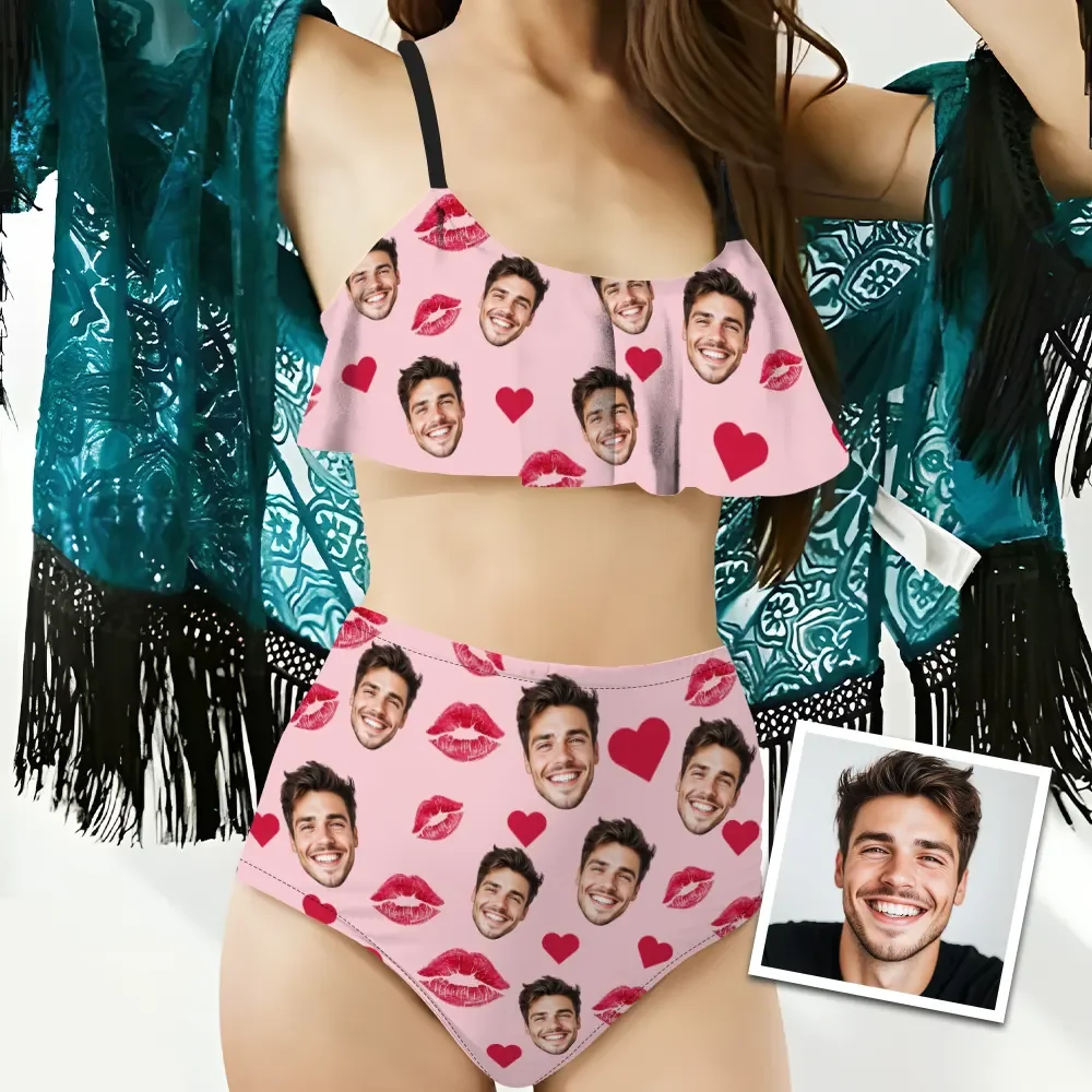Custom Photo-Print Ruffled Bikini
